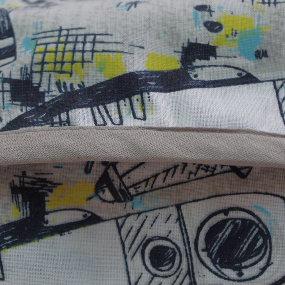 Le motif imprimé extérieur contraste avec l'intérieur sobre.