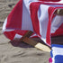 Serviettes de plage en éponge avec des rayures grises et blanches.
