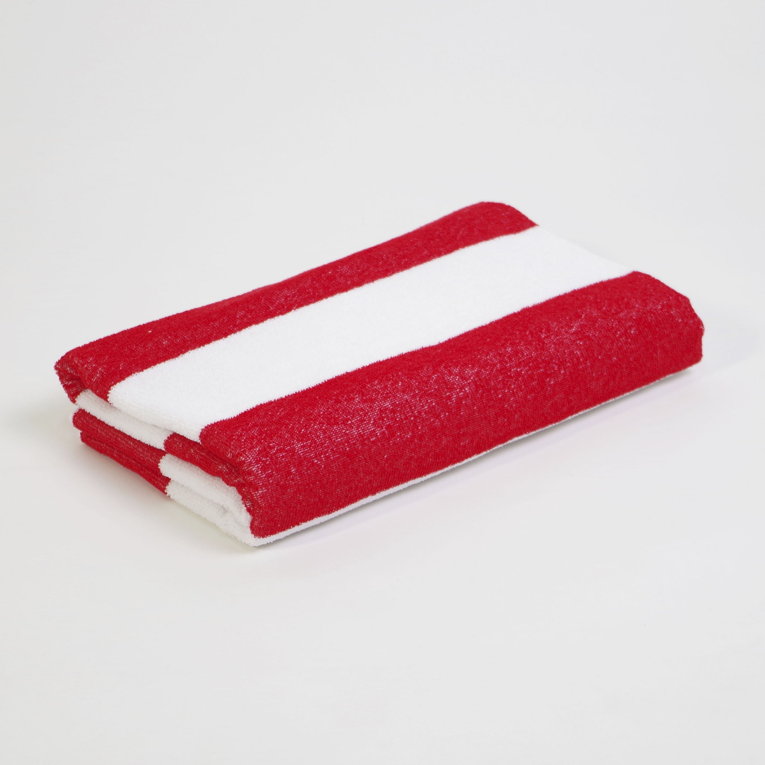 Serviettes de plage en éponge avec des rayures rouges et blanches.