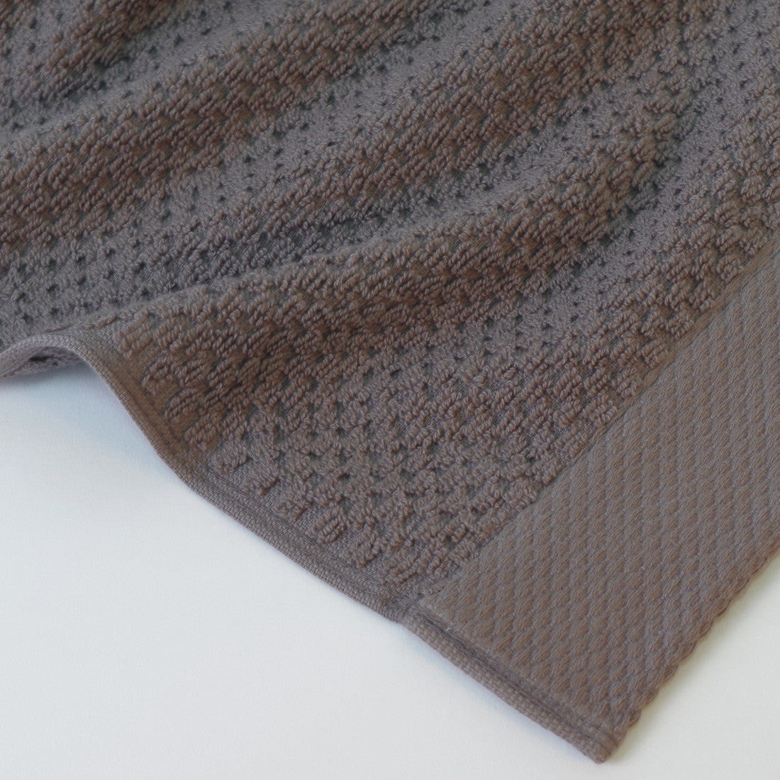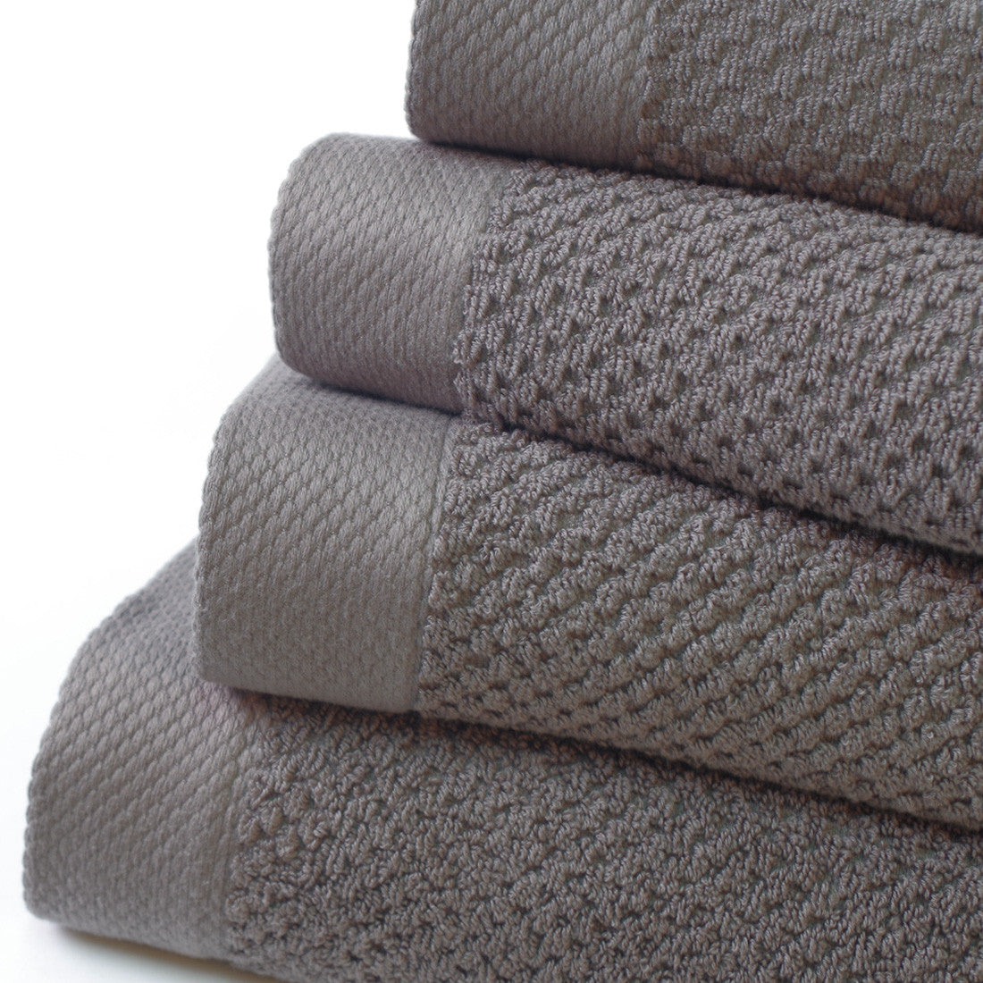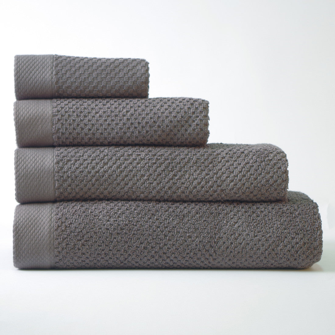 Serviette éponge avec fil 2 brins, texture grain de riz et bordure assortie.
