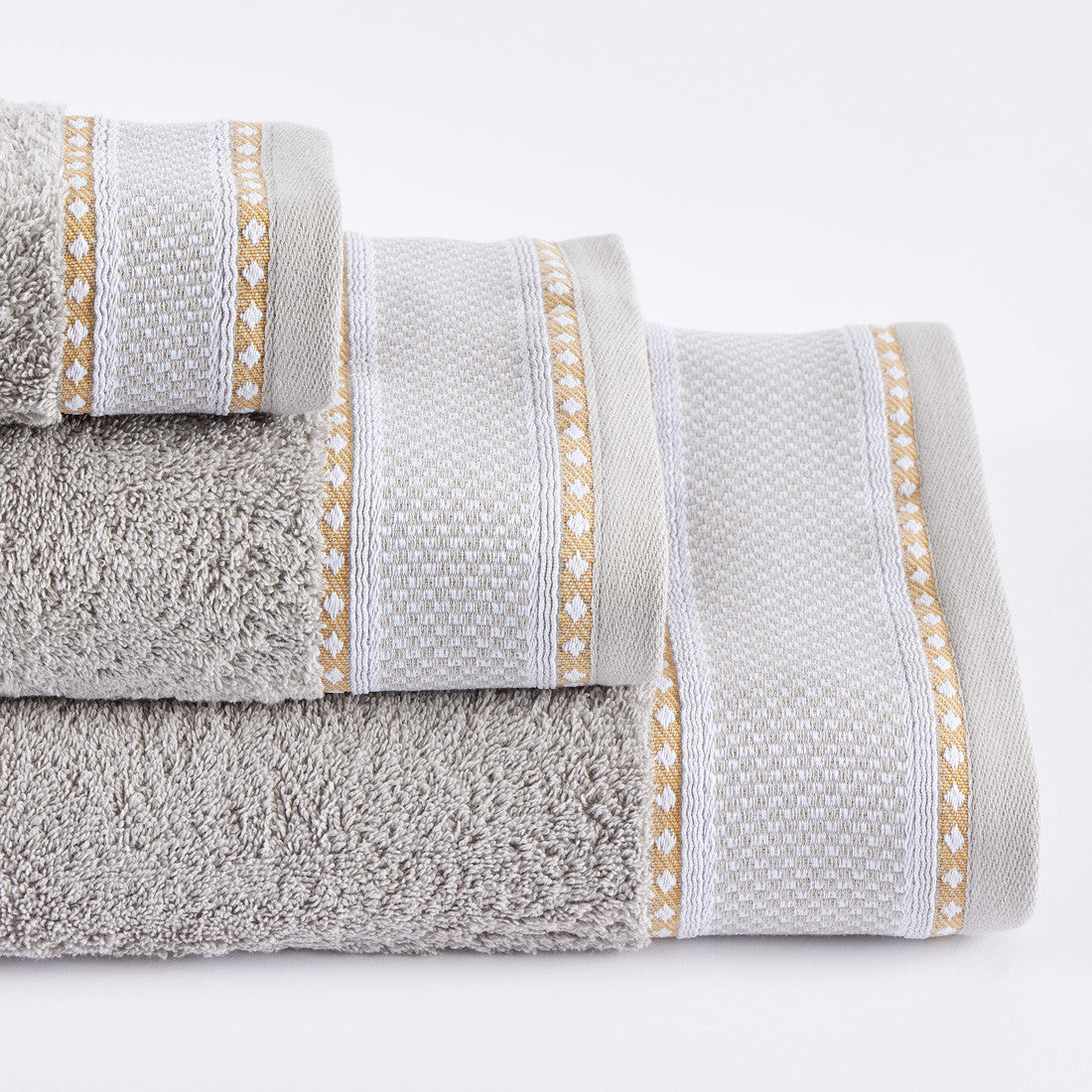 Ensemble de trois serviettes avec bande jacquard décorative.