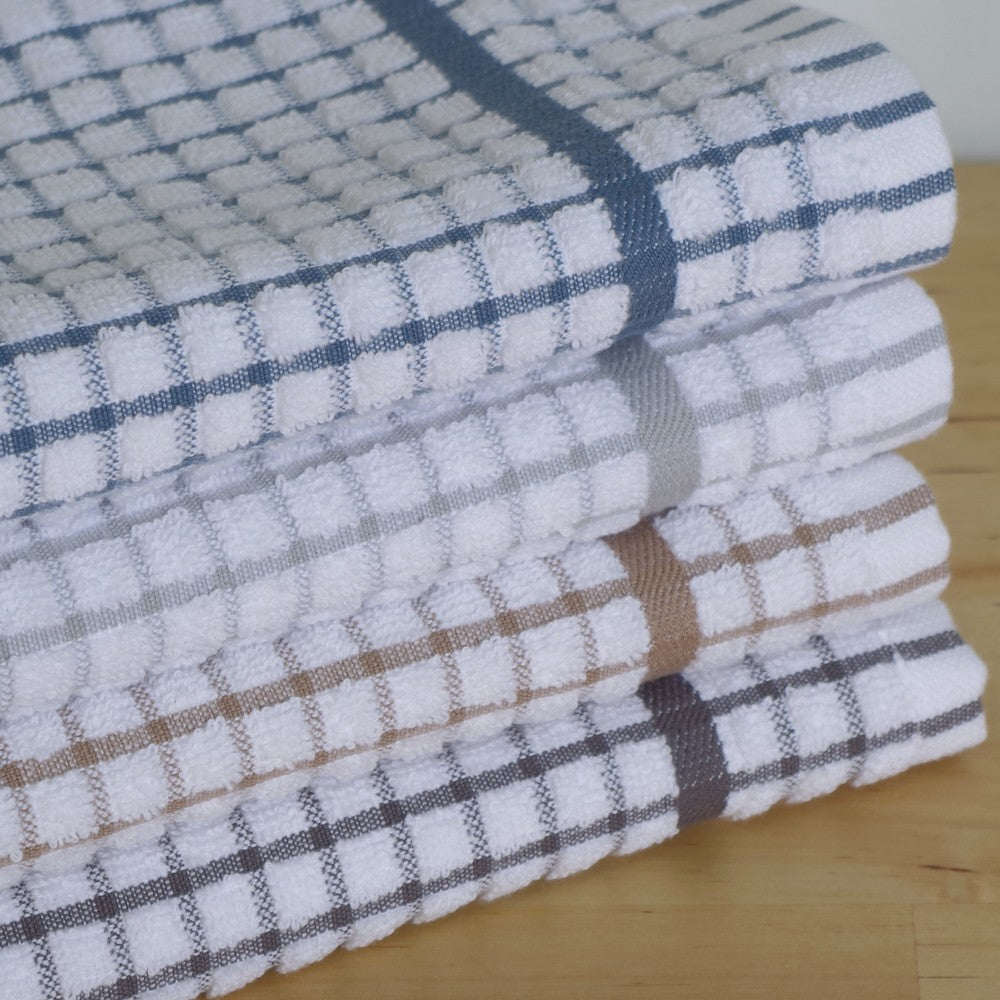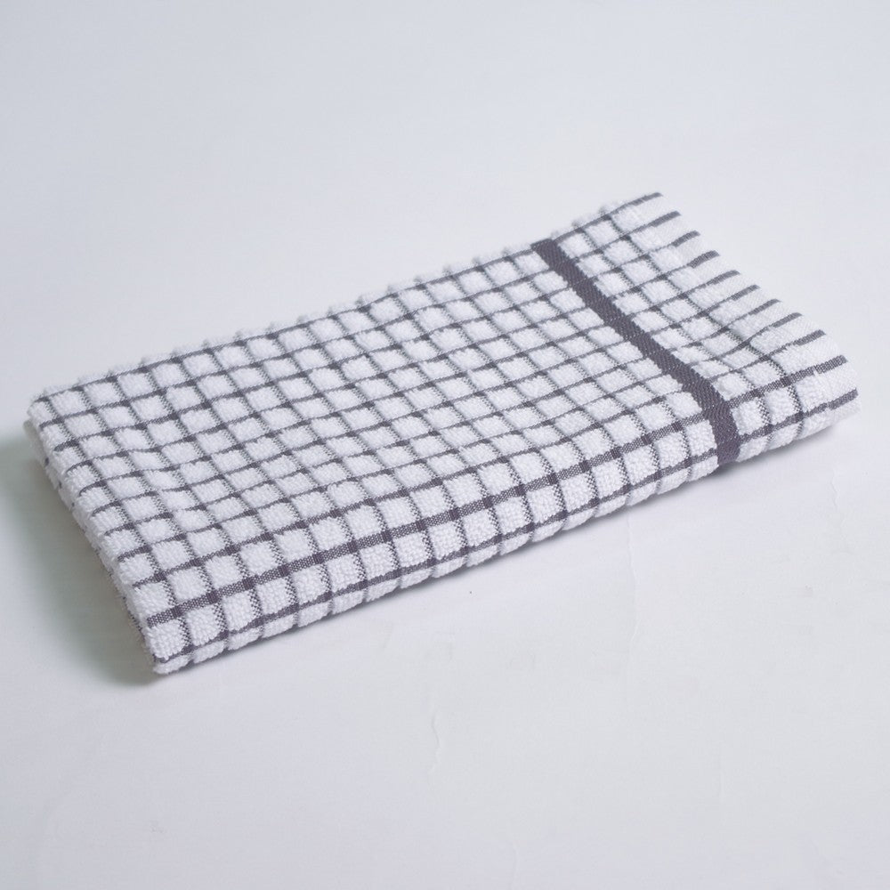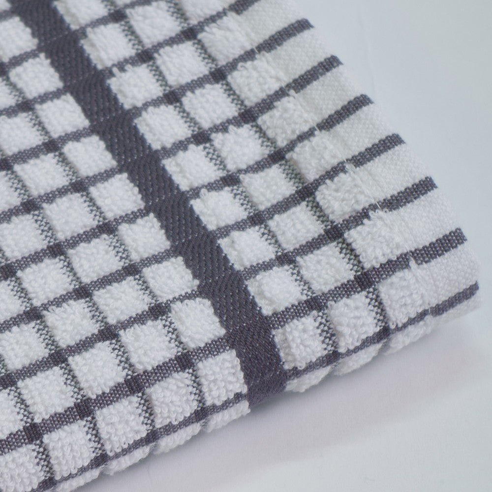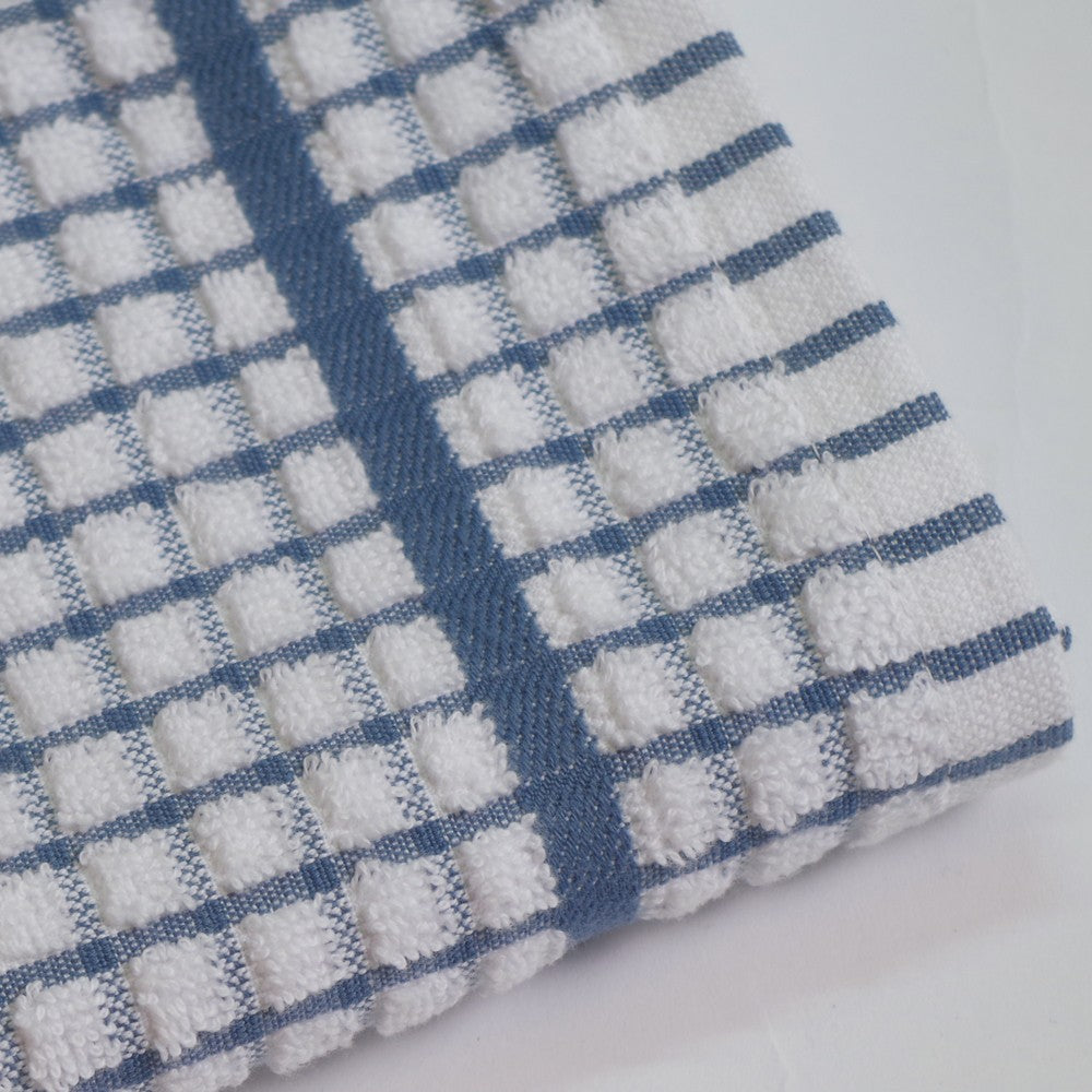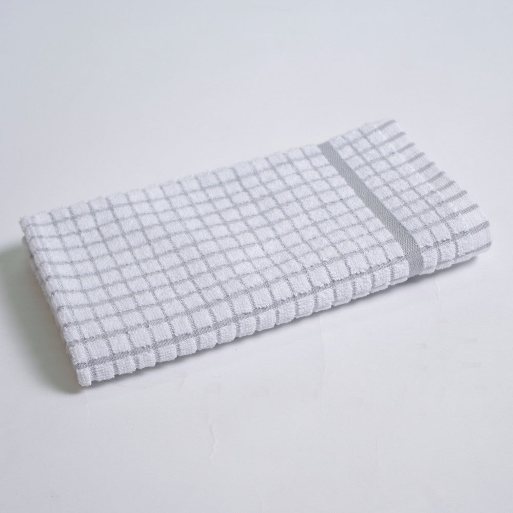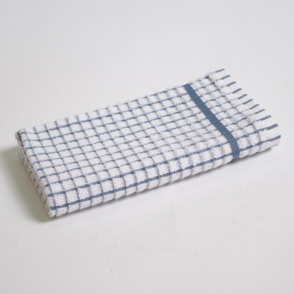 Un torchon de cuisine en éponge avec jacquard à carreaux bicolores.