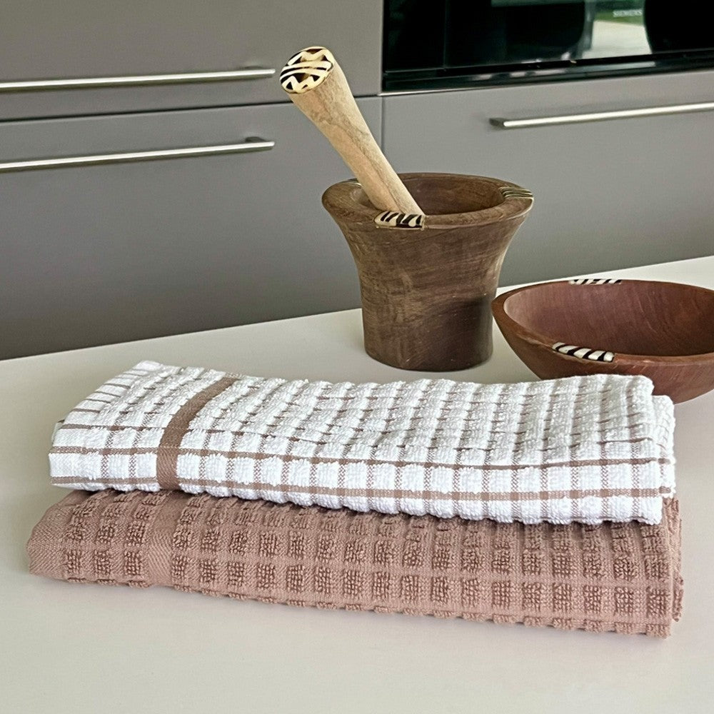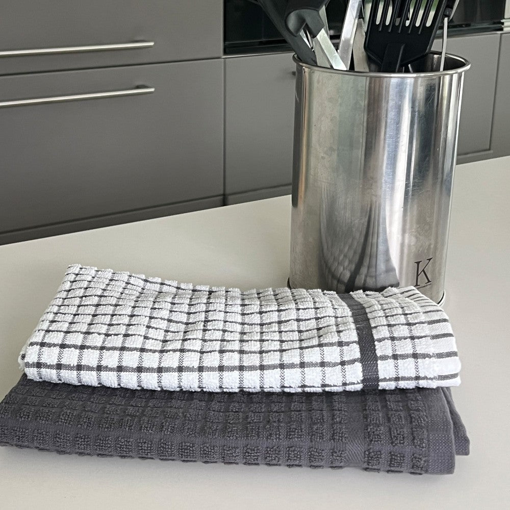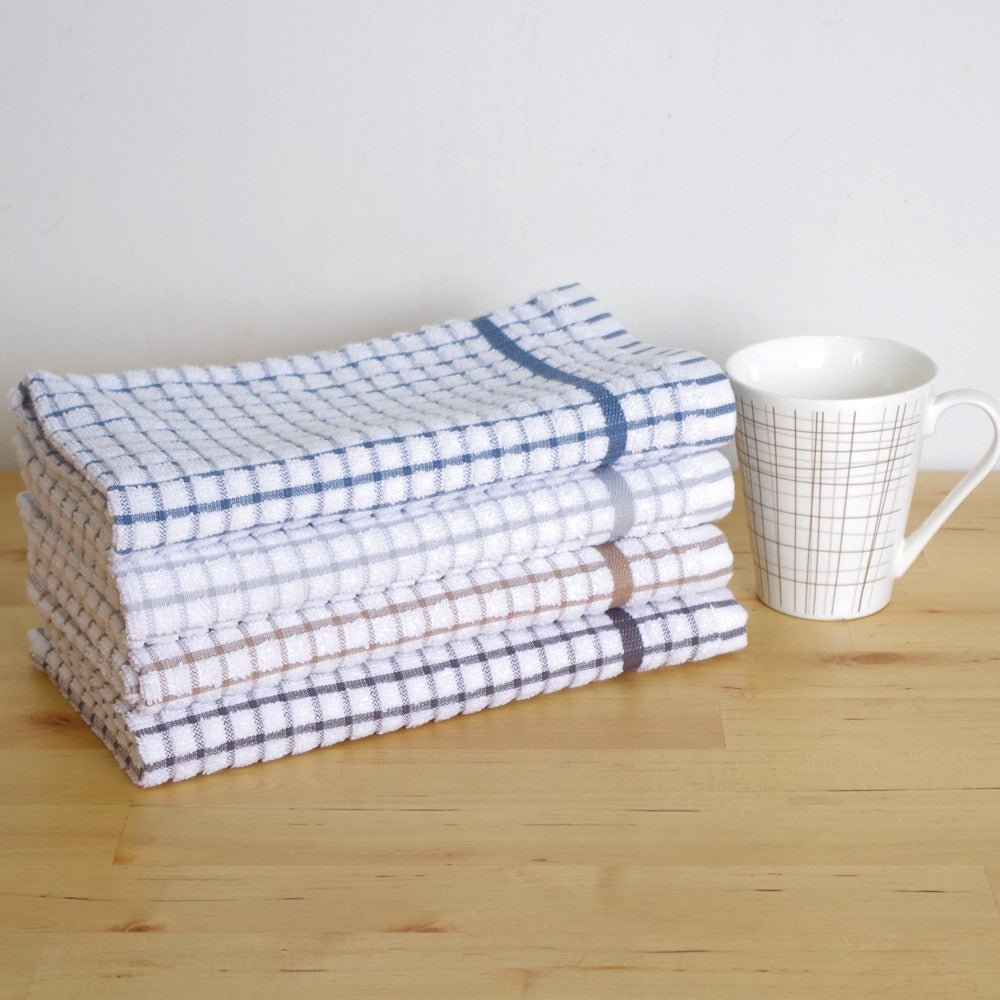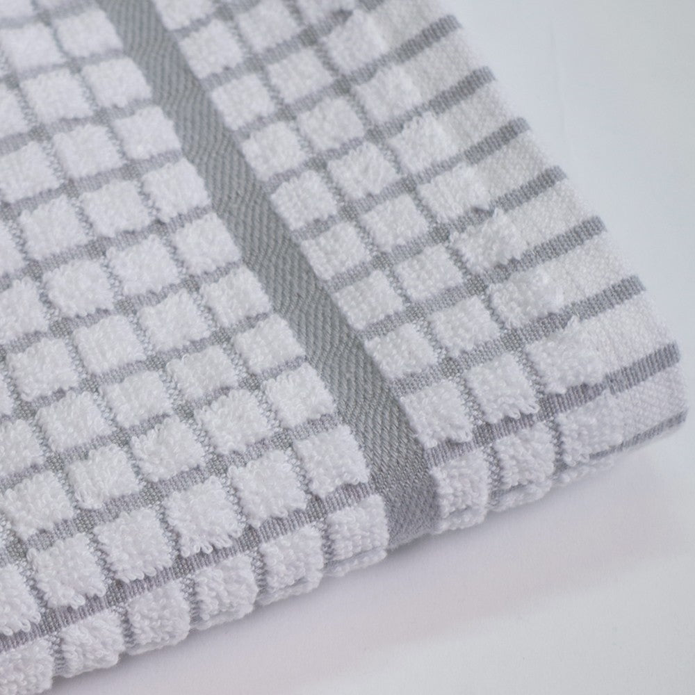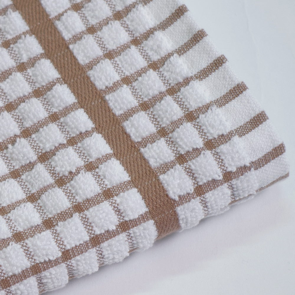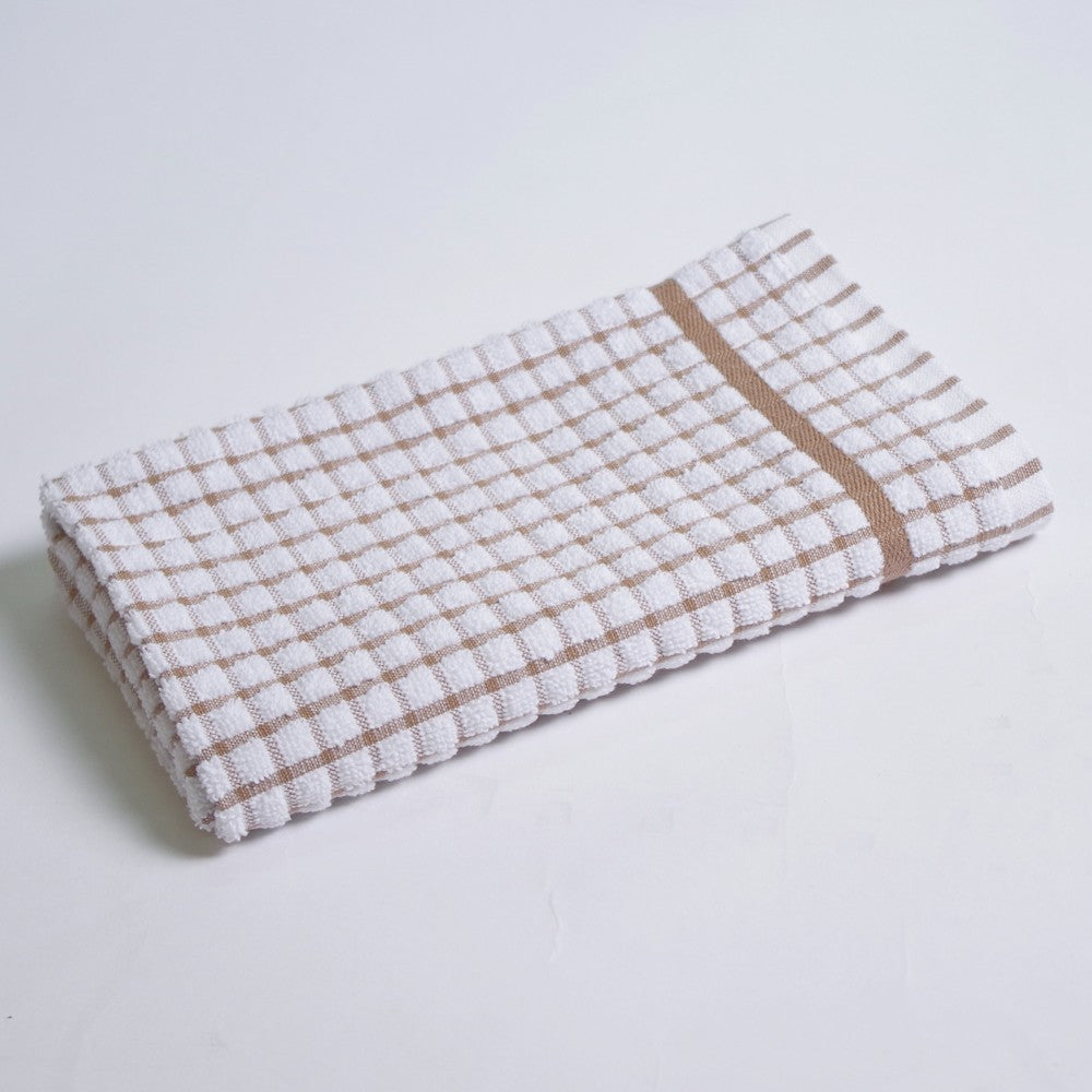 Un torchon de cuisine en éponge avec jacquard à carreaux bicolores.